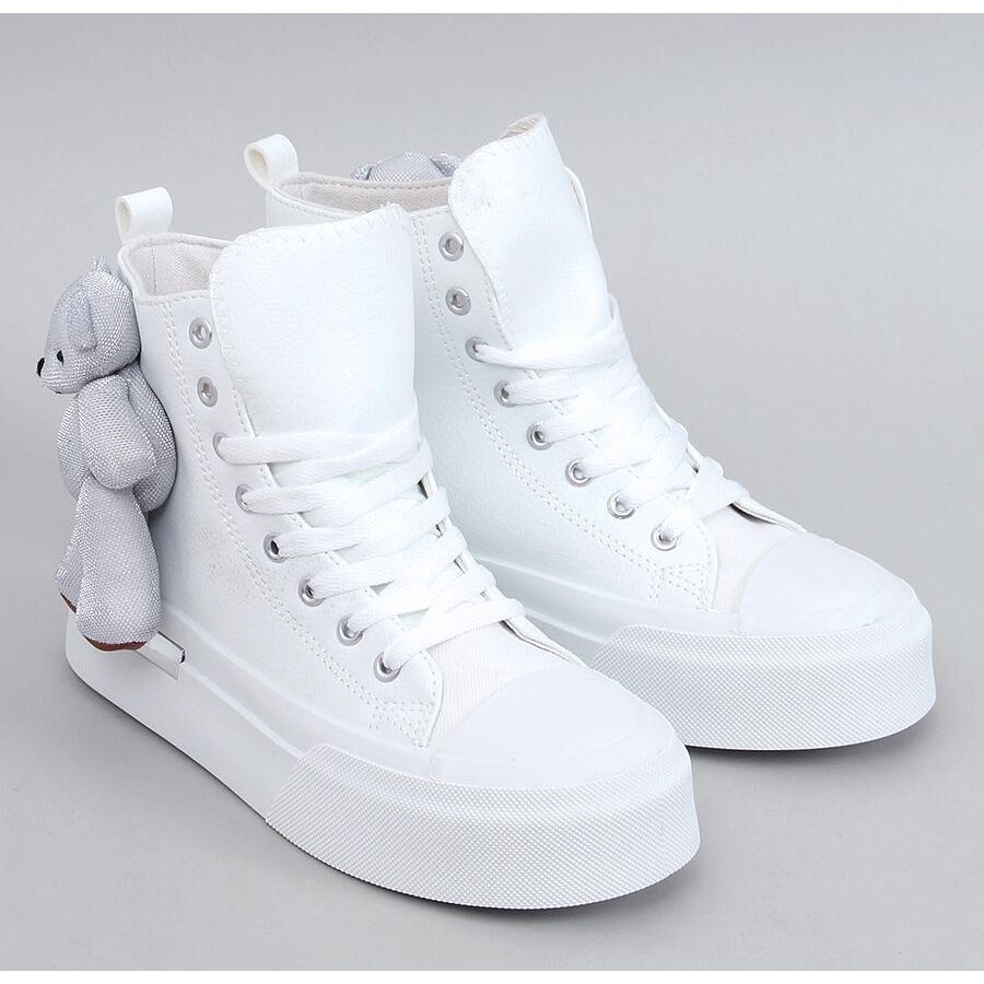 Presentiamo scarpe da ginnastica con un orsacchiotto di Bowite bianco in bianco - un successo assoluto di questa stagione, che ti attirerà sicuramente gli occhi! Queste scarpe da ginnastica uniche alla caviglia femminile combinano un taglio classico con il design moderno. Una piattaforma alla moda e un orsacchiotto affascinante, che decora la tomaia, aggiungono un personaggio unico alle scarpe e ti distinguono dalla folla.