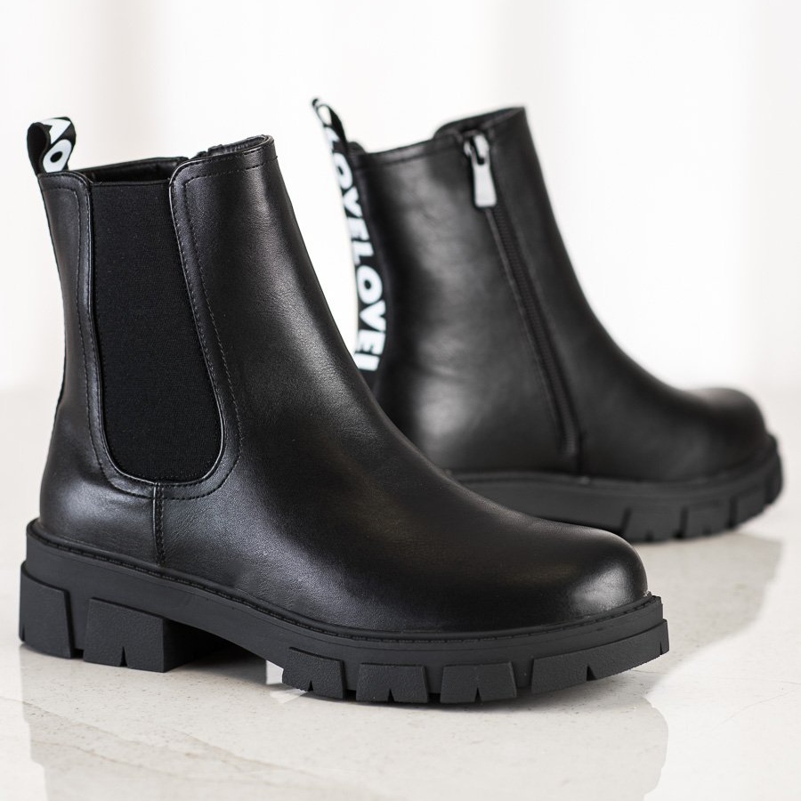 Questi sono gli stivali con plateau perfetti del rinomato produttore S. BARSKA, che si adatteranno perfettamente al guardaroba quotidiano di ogni donna alla moda. Questi stivaletti neri sono la scelta perfetta per la stagione autunno/inverno, unendo comfort e stile casual.