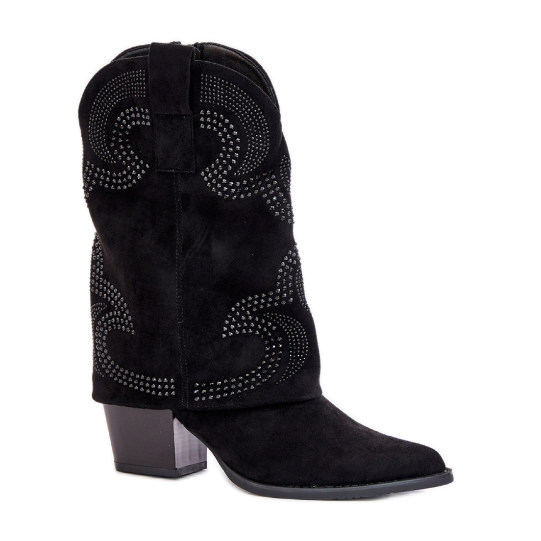 Presentiamo stivali decorati stivali da cowboy da donna S. Barski nero in un elegante colore nero - una scelta perfetta per ogni amante della moda! Questi stivali da cowboy a mezze alla moda si distinguono per una tomaia originale con getti, il che dà loro un carattere unico e li rende diventare un accento interessante di qualsiasi stilizzazione.