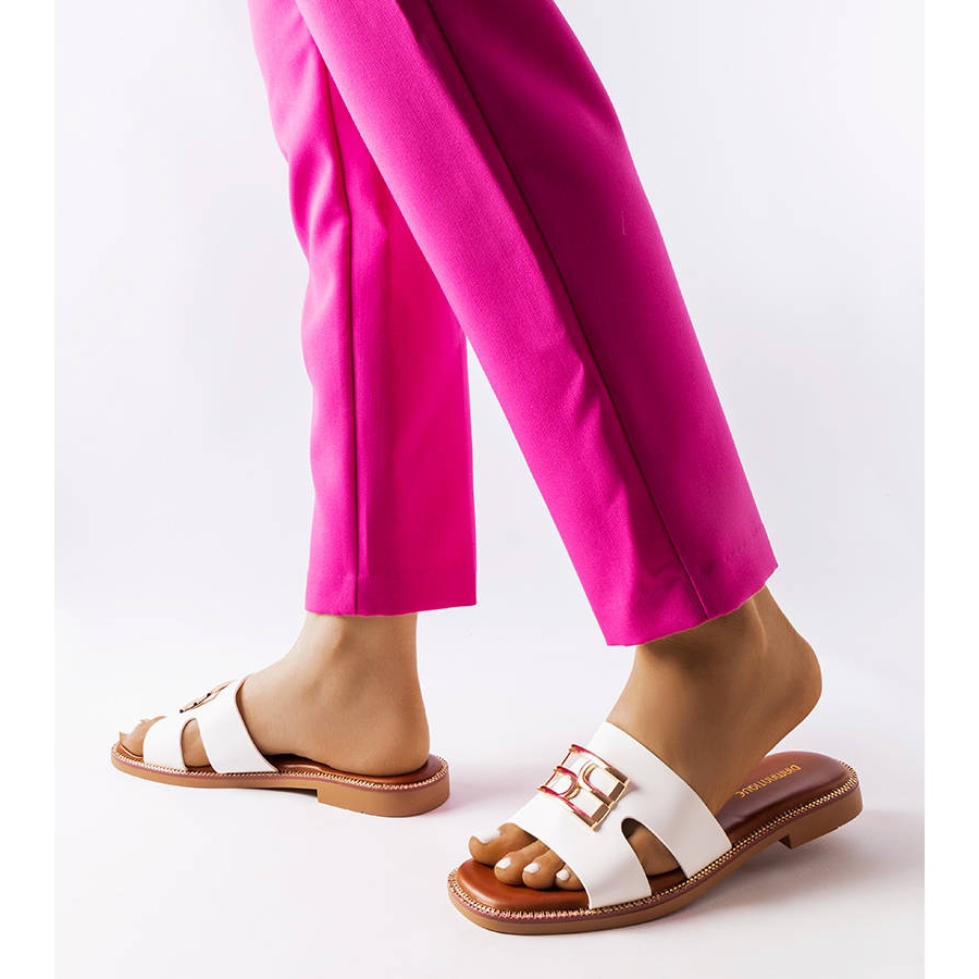 L'estate è un momento di leggerezza, comfort e stile senza compromessi. Le infradito bianche di Sabrine si inseriscono perfettamente in questi canoni estivi, proponendo calzature da donna che uniscono design trendy e comodità quotidiana. Realizzate in pelle ecologica di alta qualità, curate in ogni dettaglio, queste infradito sono l'accento perfetto per lo stile vacanziero.
