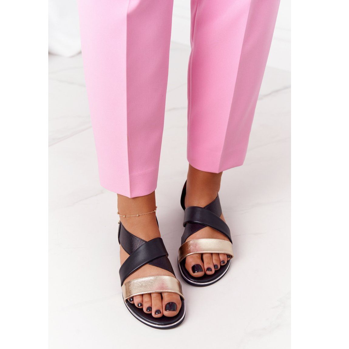 Scopri l'eleganza e il comfort negli esclusivi sandali EVE della serie Puglia nei toni dell'oro e del nero! Questi eleganti sandali da donna, realizzati in pelle ecologica di alta qualità, uniscono design alla moda e funzionalità. Grazie al polsino elastico, si adattano perfettamente al piede, risultando comode da indossare tutto il giorno.
