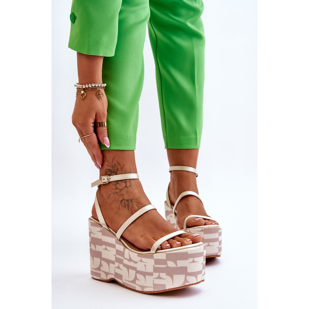 La sicurezza e il comfort sono garantiti dalla suola in gomma antiscivolo e il cinturino regolabile con fibbia consente di adattarli perfettamente al piede. Il sottopiede in pelle ecologica garantisce comfort anche durante un uso prolungato. Grazie a questi sandali, il vostro styling estivo acquisterà freschezza ed eleganza!