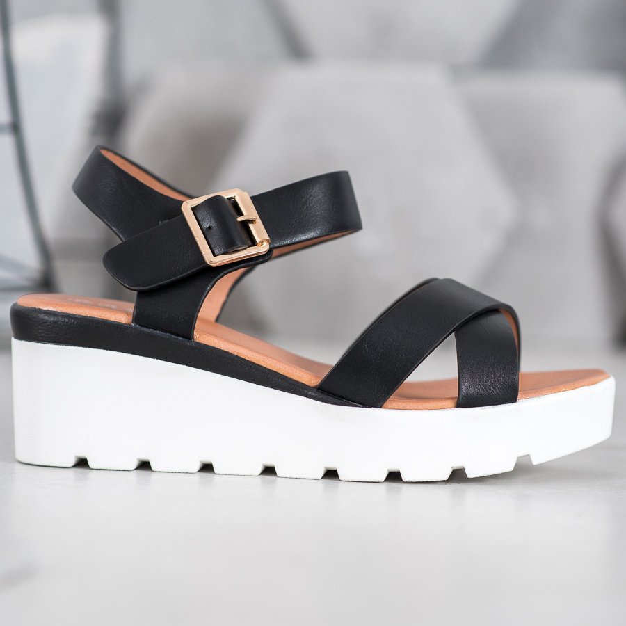 Il modello nell'elegante colorazione nera si abbina perfettamente alla suola bianca, creando un contrasto modaiolo che attira l'attenzione. Grazie al tacco aperto e al taglio classico, questi sandali non sono solo eleganti, ma anche estremamente comodi.