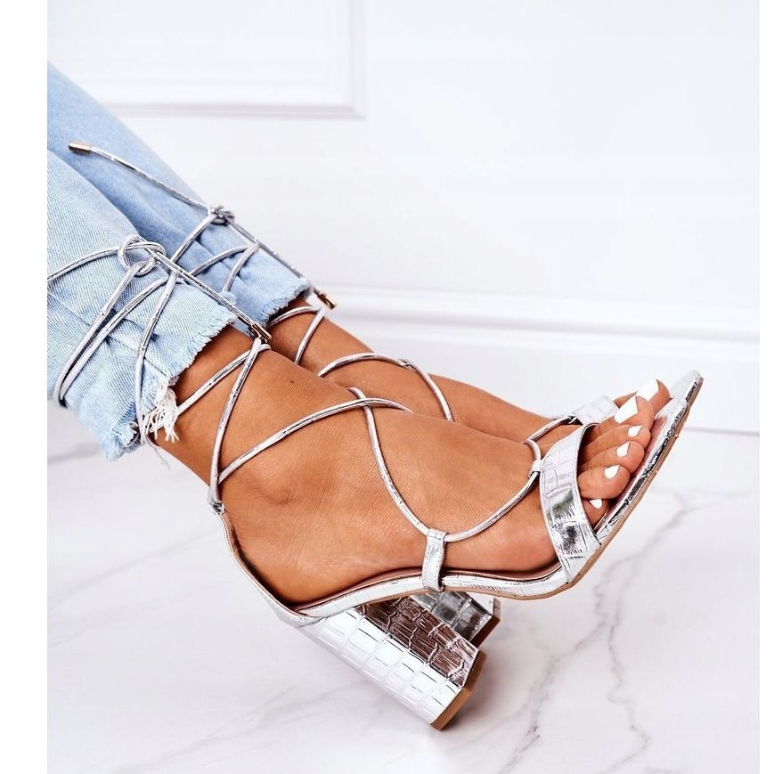 Dettagli: PS1 Sandali allacciati su una passerella d'argento bar