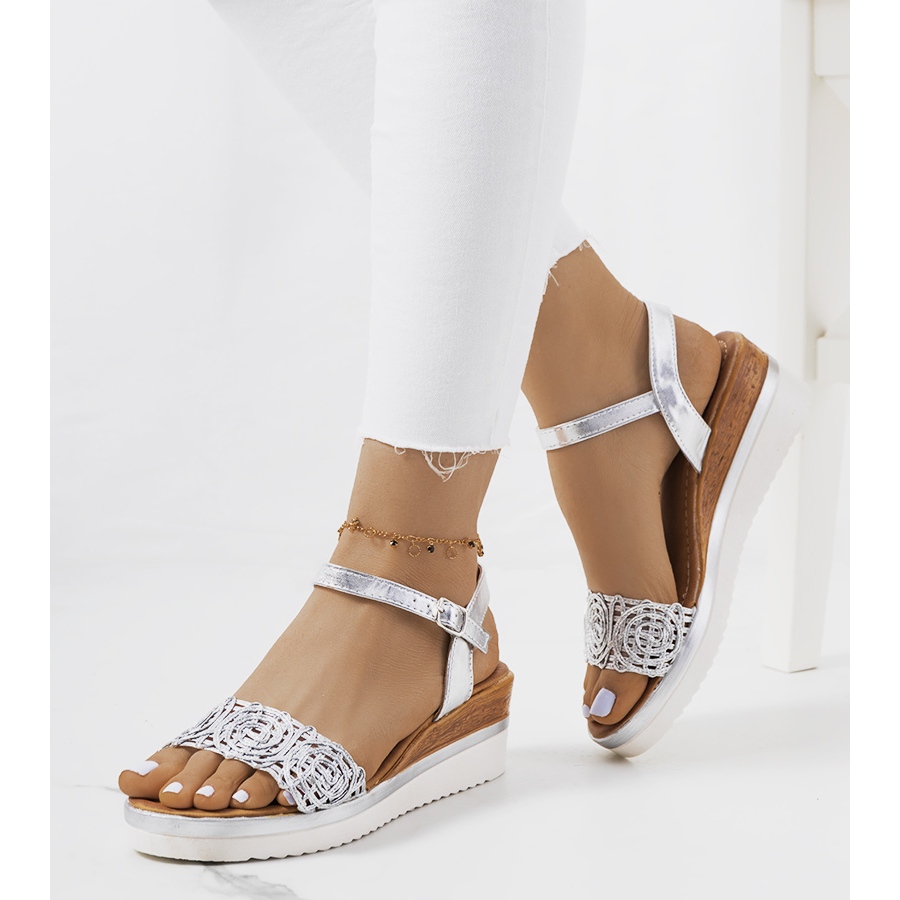 I sandali Kirk argento con cinturino decorativo sono la scelta perfetta per le donne che vogliono unire l'eleganza al comfort quotidiano. Questo modello, caratterizzato da una zeppa bassa, completerà perfettamente sia gli stili casual che quelli più formali, donando loro una lucentezza unica. La tomaia lucida attira l'attenzione, e il taglio classico rende questi sandali universali e senza tempo.