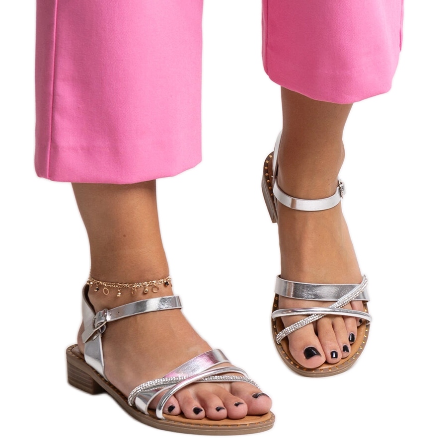 Il colore d'argento e gli strass sottili danno ai sandali un bagliore speciale, grazie a cui creerai stilizzazioni indimenticabili, sia su base giornaliera che per occasioni speciali. Inoltre, la fibbia consente un dispositivo di fissaggio facile e rapido, che garantisce comodità di utilizzo e certezza che i sandali rimarranno in vigore anche durante le intense attività estive.