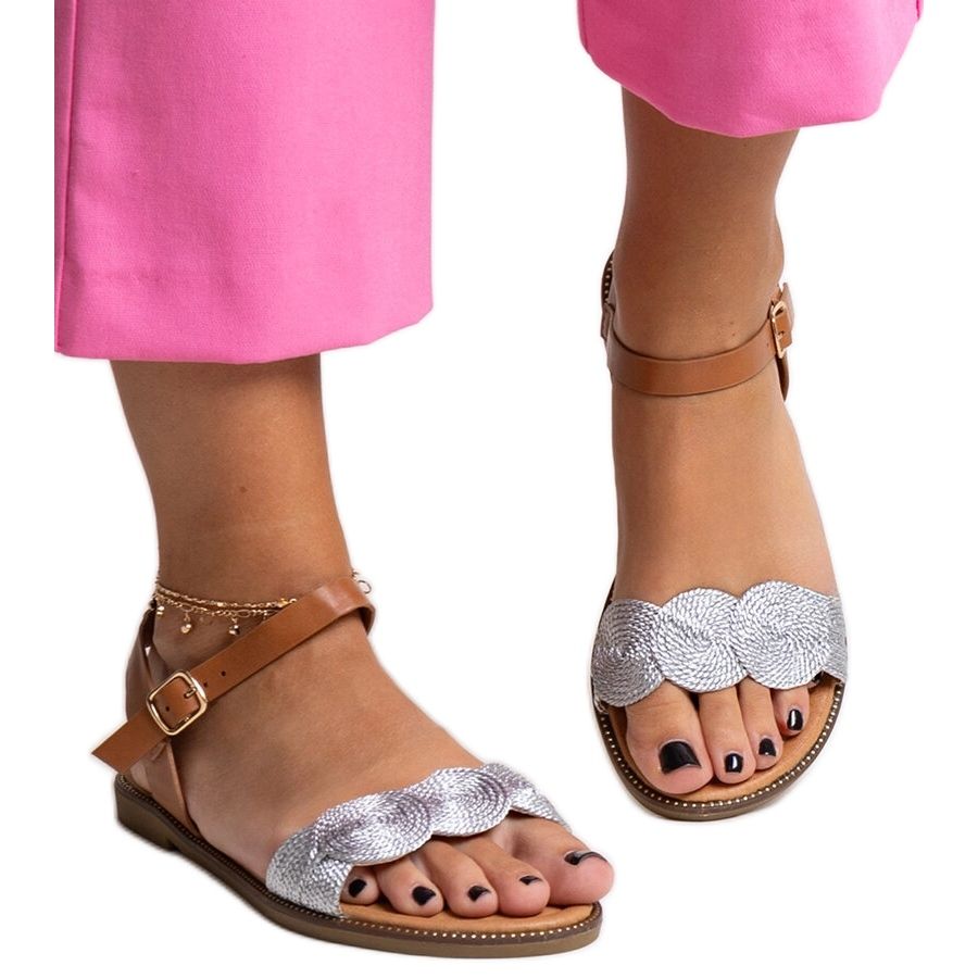 Dettagli: Sandali argento e marrone con accessori dorati Amja