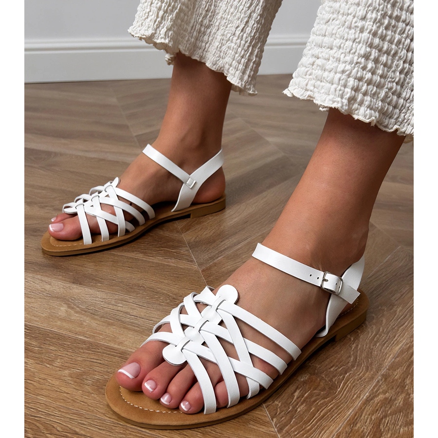 Inna marka Sandali bianchi avvolti su una suola piatta bianca