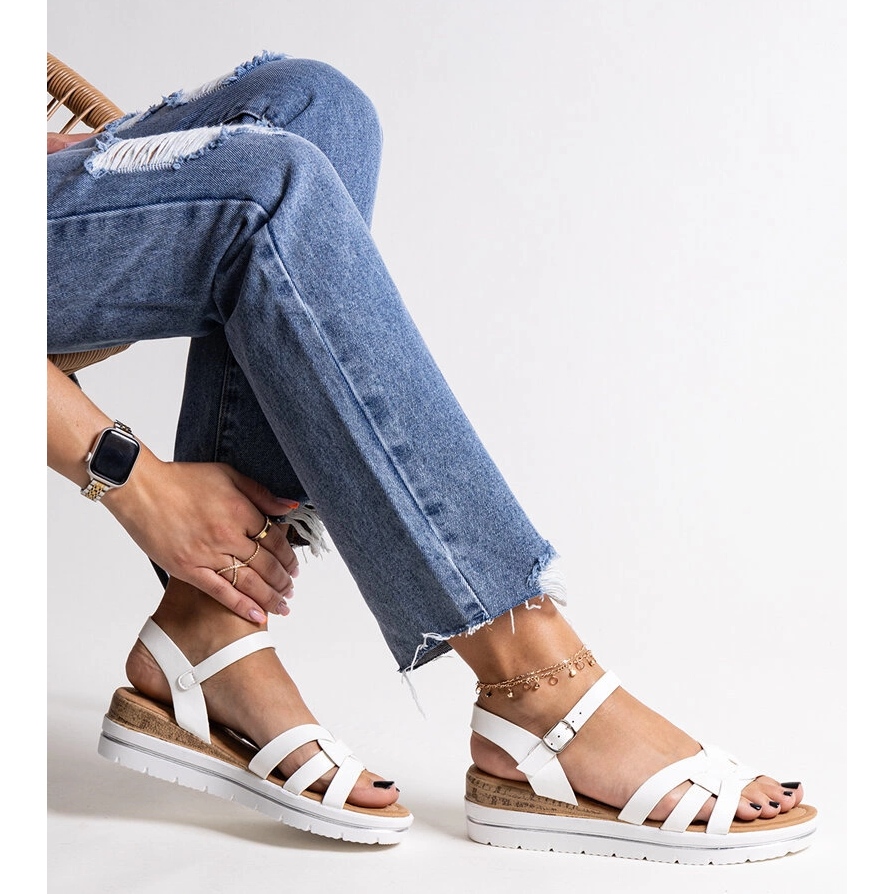 Scopri i sandali bianchi su un cuneo Hikma basso - una scelta eccellente per le giornate estive che combinano un design alla moda con il massimo comfort. Questi sandali classici, realizzati in pelle ecologica di alta qualità, si distinguono per la sua semplicità ed eleganza, il che li rende un'aggiunta ideale per ogni stilizzazione estiva.