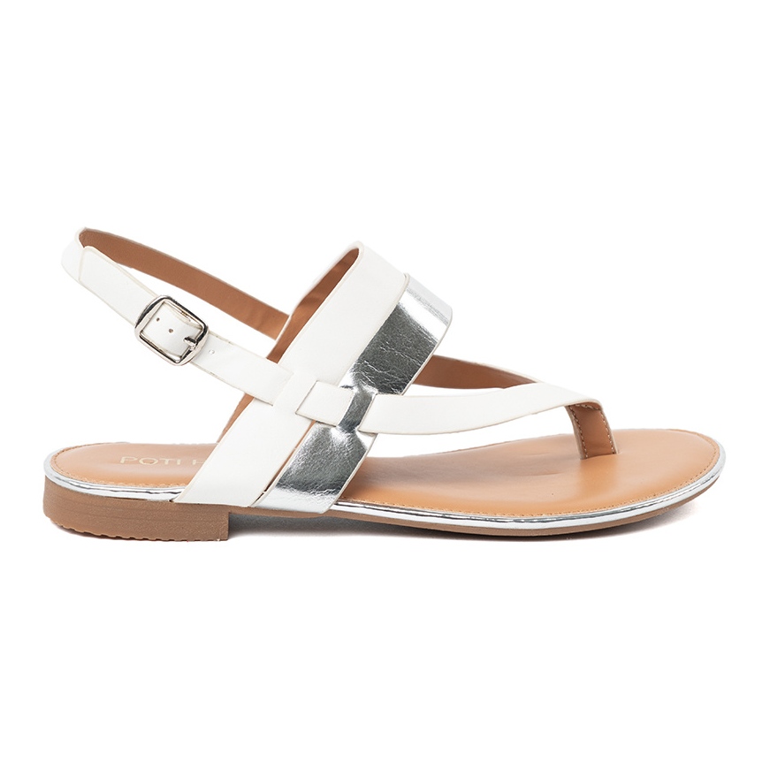Dettagli: Shelvt Sandali bianchi e argento con una cintura larga multicolore