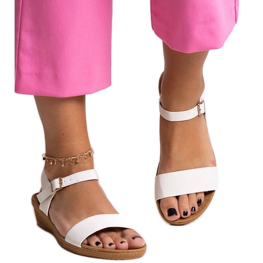 I sandali bianchi realizzati con macdaka eco skin sono una scelta eccellente per le calde giornate estive. Il loro taglio classico e il colore elegante fanno sì che ogni stilizzazione guadagni unicità. Realizzati in pelle ecologica di alta qualità, questi sandali combinano un look alla moda con attenzione all'ambiente. Un delicato cuneo di alto livello di 4 cm offre comfort e allo stesso tempo allunga otticamente le gambe, il che è certamente un vantaggio di ogni donna che vuole enfatizzare la sua figura.