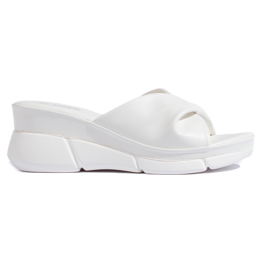 Queste zeppe bianche vengono inserite, il che significa che metterli avanti e toglierli è estremamente semplice e veloce. Senza un naso, sono un'eccellente alternativa ai sandali tradizionali e il loro design minimalista senza disegni li rende facili da combinare con abiti, pantaloni o pantaloncini colorati.