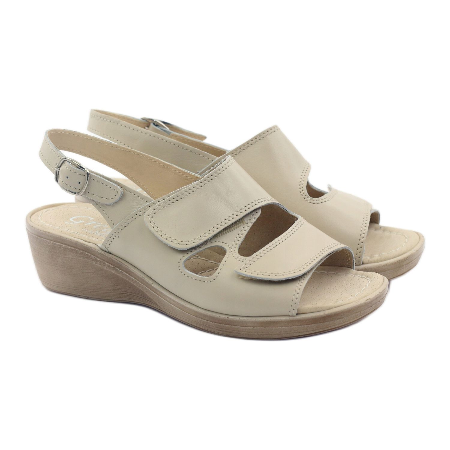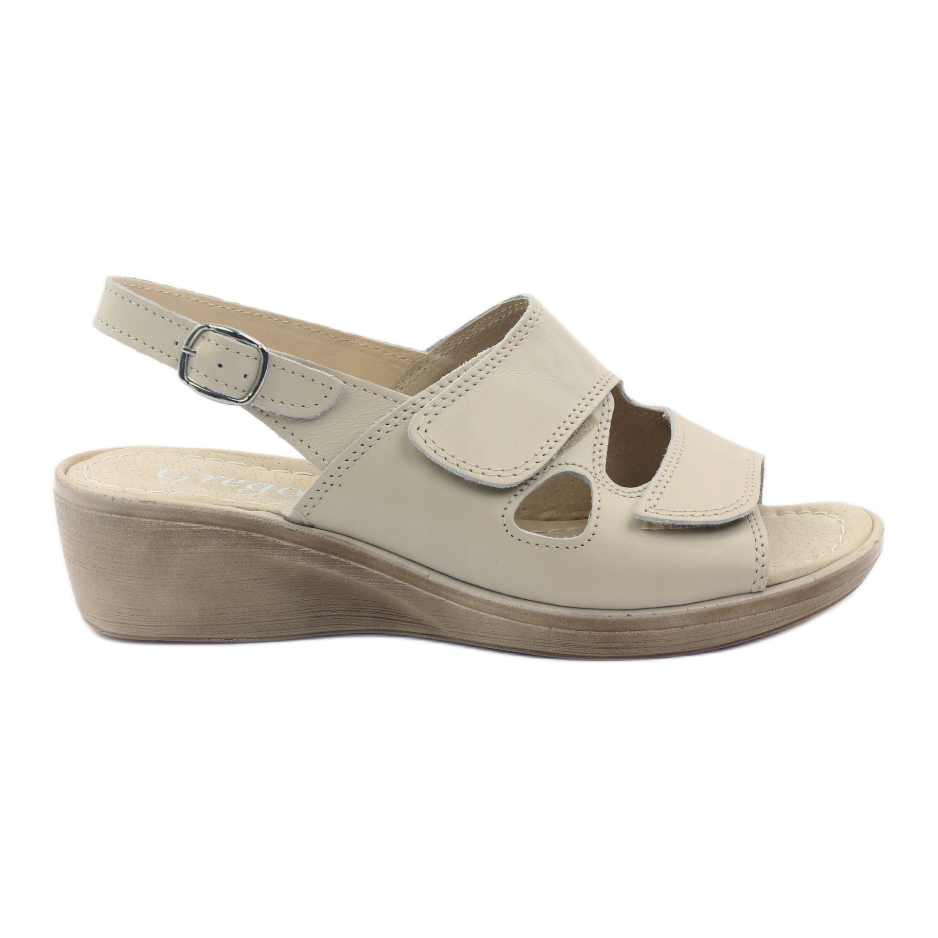 I sandali con zeppa da donna Gregors 592 sono la scelta ideale per le donne che apprezzano sia il comfort che l'aspetto alla moda. Questi sandali beige sono realizzati in pelle a grana naturale di alta qualità, che garantisce non solo un aspetto estetico, ma anche durata e comfort da indossare.