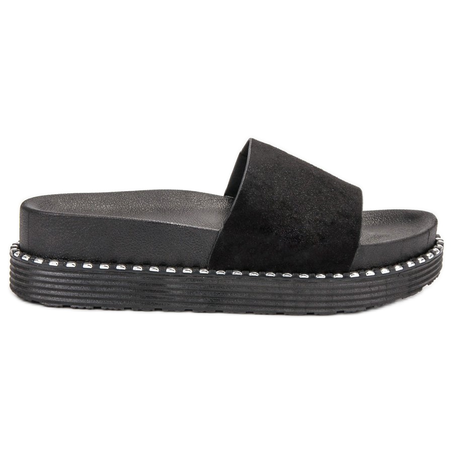 Aggiungi un po' di stile al tuo assortimento estivo con i sabot con zeppa di Melisa! Queste eleganti infradito nere sono la scelta perfetta per ogni donna moderna che vuole unire la comodità ad un look alla moda.