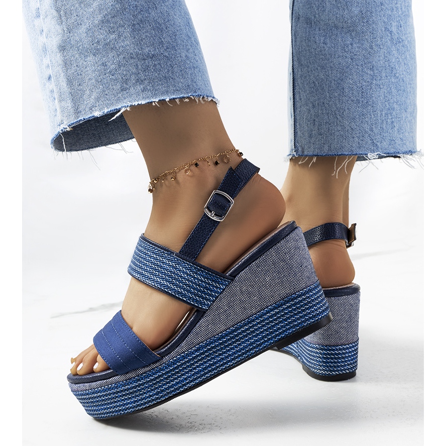 Scopri l'eleganza e la comodità con i sandali con zeppa Rocha blu navy. Queste scarpe uniche del produttore "Inna Marka" sono una perfetta combinazione di stile classico e moderno, che funzionerà bene in molti outfit estivi.