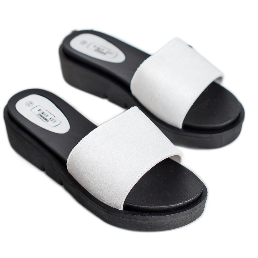 Stai cercando le infradito perfette per le giornate calde? Gli zoccoli con zeppa di SHELOVET sono la scelta perfetta per ogni donna che vuole unire comfort ed eleganza. Realizzate in pelle scamosciata ecologica, queste infradito bianche dal taglio classico hanno un aspetto estremamente elegante, abbinandosi perfettamente alle tendenze primavera-estate.