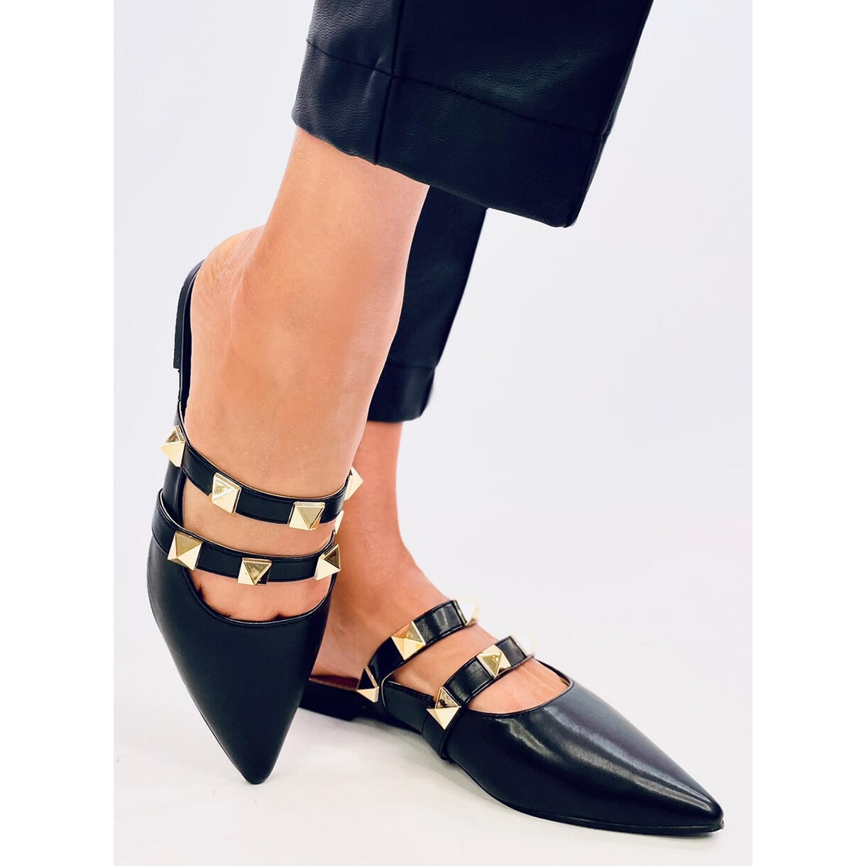 Flip di grano neri che combinano una forma classica con un accento decisivo e alla moda. Un taglio pulito con le dita dei piedi restrittive sottilmente sottili il piede e le strisce soffiate con borchie danno al carattere delle scarpe e allo stile moderno. Perfetto ogni giorno - per le stilizzazioni urbane, per una passeggiata o per lavorare nei giorni più caldi.