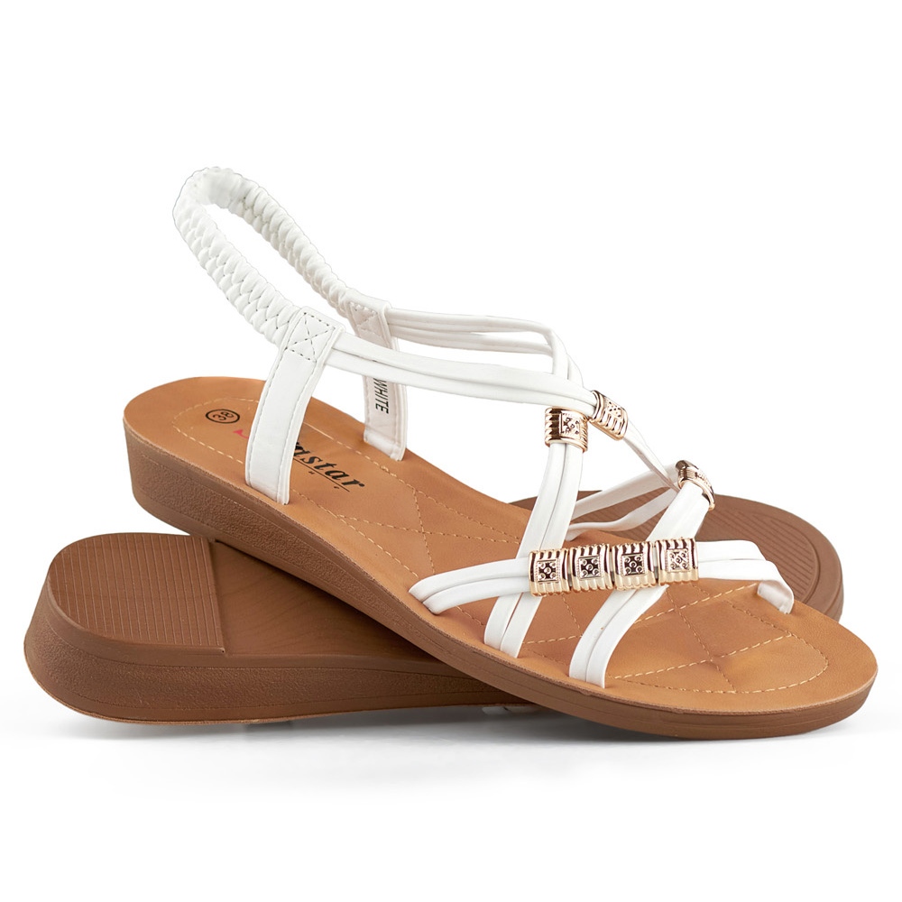 Sandali da donna con fascia elastica con decoro oro bianco