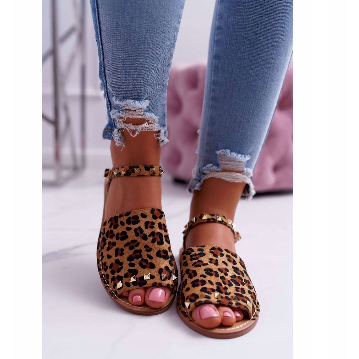 I sandali si distinguono per un esclusivo motivo animalier che cattura l'attenzione e aggiunge carattere a qualsiasi styling. Ulteriori decorazioni sotto forma di borchie sono un accento interessante che si adatta perfettamente alle attuali tendenze della moda. Realizzati in pelle scamosciata ecologica, non sono solo estetici, ma anche rispettosi dell'ambiente.