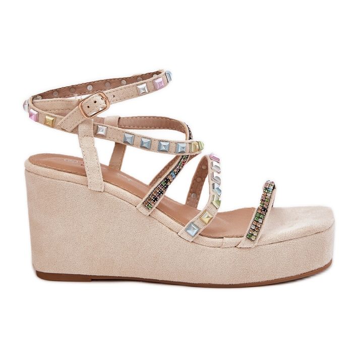 Dettagli: Sandali da donna per cuneo con decorazione su strisce beige