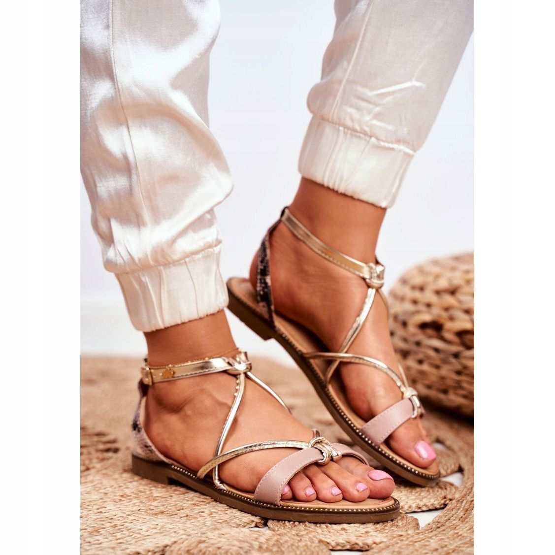 I sandali piatti da donna beige e dorati di S.Barski sono la scelta perfetta per le giornate estive che uniscono stile e comfort. Realizzati in pelle ecologica di alta qualità, questi sandali leggeri si distinguono per un colore beige alla moda con sottili accenti dorati che aggiungono eleganza e chic.