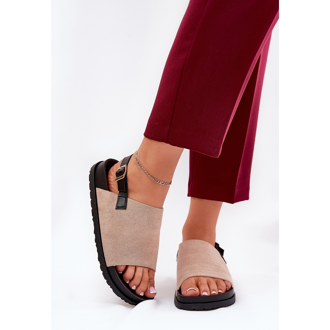 Scopri l'eleganza straordinaria e il comfort con i nostri sandali da donna beige con eco scamosciata sulla piattaforma. Queste scarpe eleganti sono la combinazione perfetta di design alla moda con funzionalità che funzionerà in ogni situazione. Realizzati con materiali di alta qualità, i sandali sono stati incorporati su una piattaforma sottile con un'altezza di 3 cm, che non solo aumenta la figura, ma fornisce anche comfort su base giornaliera.