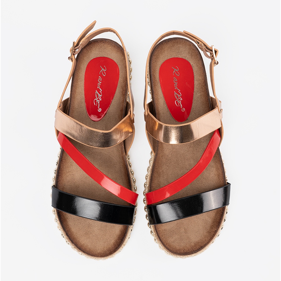 Scopri lo stile unico e il comfort dei sandali femminili con una suola decorata in un delizioso colore dorato. Questi sandali eleganti sono una combinazione perfetta di design alla moda e comfort eccezionale, ideale alle stilizzazioni quotidiane.