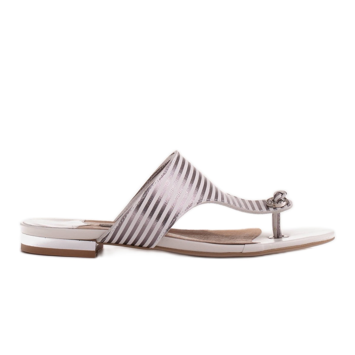 I sandali hanno una suola sintetica con un'altezza di 1,5 cm, che li rende leggeri e comodi da indossare. L'interno delle scarpe è realizzato in pelle naturale, che garantisce ulteriore comfort e ventilazione dei piedi, anche nelle giornate più calde. Le cinghie eleganti sottolineano perfettamente la linea del piede e il tallone metallico aggiunge un carattere unico.