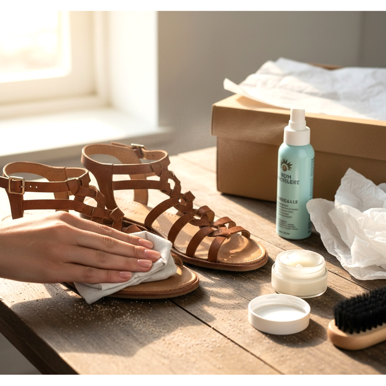 I sandali indossati in estate sono esposti a un contatto molto più intenso con fattori esterni rispetto agli stivali invernali: sudore, acqua, sabbia, crema solare. Una cura regolare è la chiave per mantenere le scarpe da gladiatore belle per tutta l'estate e per molte stagioni a venire.
