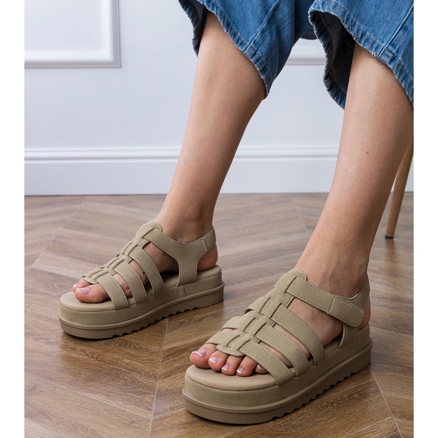 Dettagli: Sandali gladiatori beige scuri sulla piattaforma