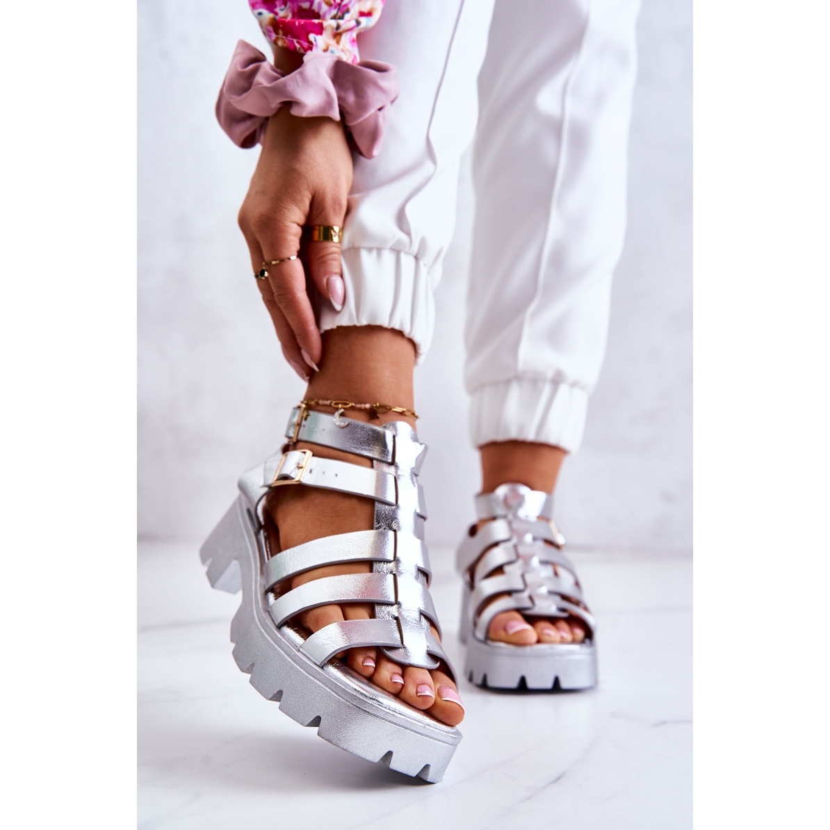 PS1 Sandali In Pelle Con Strisce Argento Minorite