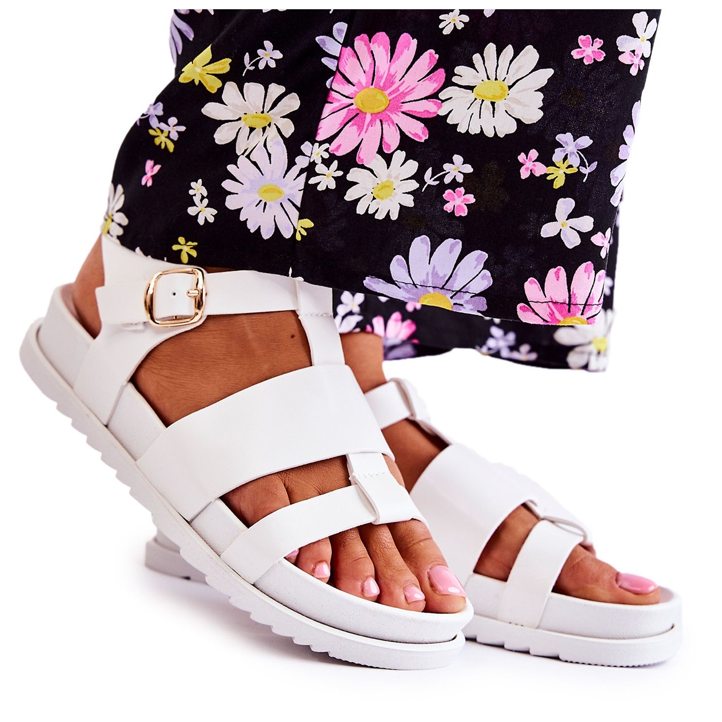 I sandali hanno una punta aperta e arrotondata e un tacco aperto, che sottolinea il loro design moderno. Il sottopiede in plastica morbida e profilata garantirà comfort anche durante una lunga giornata. Inoltre, l'altezza della piattaforma di 3,5 cm rende le scarpe non solo eleganti, ma anche stabili, permettendoti di muoverti liberamente ad ogni passo.