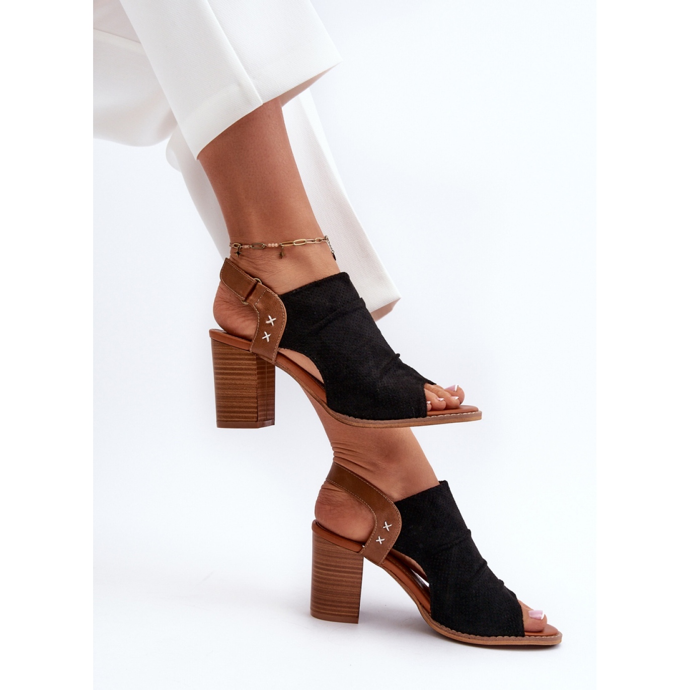 L'interno dei sandali è stato rifinito con pelle naturale, il che garantisce comfort e piacere d'uso, anche durante una giornata intensiva. Questo modello sarà perfetto sia in combinazione con abiti estivi ed eleganti pantaloni.