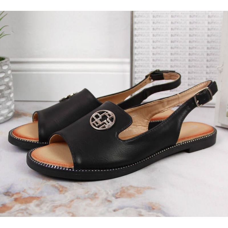 Sandali da donna con decorazione filippo - nero con decorazione dorata