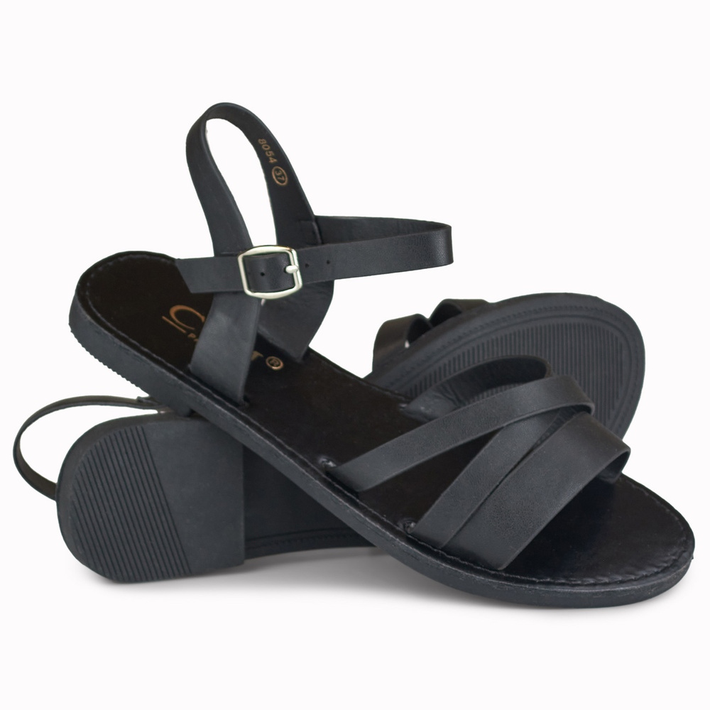 Scopri l'eleganza e la comodità dei sandali bassi neri da donna Violet del rinomato marchio KeeShoes. Realizzati in pelle ecologica di alta qualità, questi sandali classici sono la scelta perfetta per la stagione primavera/estate. Il loro design nero minimalista li rende perfettamente adatti a una varietà di stili, dal casual al più elegante.