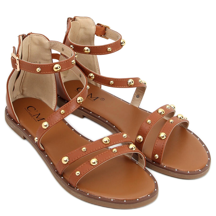Scopri comfort e stile senza rivali con i sandali romani Kair Camel marroni! Queste esclusive scarpe da donna con suola piatta sono la perfetta combinazione di eleganza e carattere casual. Il modello si distingue per le imponenti borchie e le finiture decorative, che aggiungono un'espressione unica all'insieme.