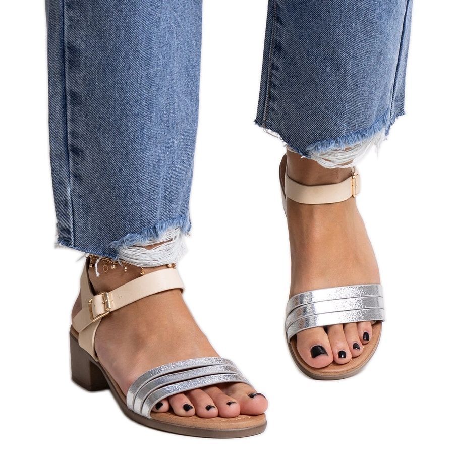 Il fissaggio della fibbia ti consente di adattare facilmente il piede e il naso rotondo garantisce il comfort in tutte le condizioni. Il colore d'argento con accenti beige aggiunge tutto lo stile e rende questi sandali un complemento perfetto per stili casual e più eleganti.