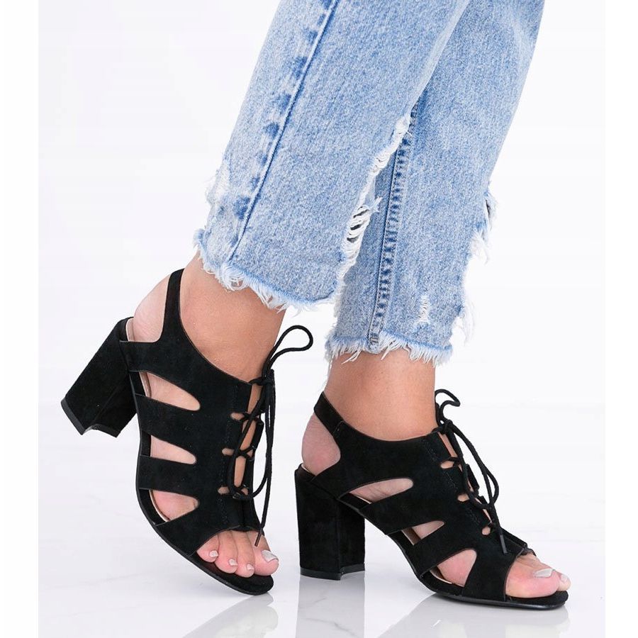 Scopri l'eleganza e lo stile con i sandali stringati neri con tacco Isabella. Questi sandali unici, realizzati in pelle ecologica scamosciata, uniscono design moderno e comfort di indossamento. Grazie ai lacci allacciati, la tomaia si adatta perfettamente al piede, garantendo non solo comfort, ma anche stabilità ad ogni passo.