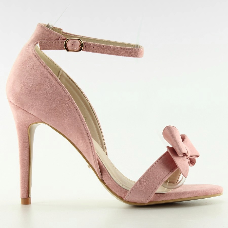 Sandali con tacco alto 6101 pink - rosa, affascinanti ed estremamente femminili. Realizzati in pelle scamosciata ecologica, si distinguono per un tacco slim di 10,5 cm che slancia la figura. Una chiusura con fibbia alla caviglia garantisce una presa sicura sul piede, mentre un sottile fiocco sul cinturino anteriore aggiunge un carattere delicato e romantico. Il modello aperto sul davanti (senza naso) è perfetto per le serate estive e le occasioni speciali.