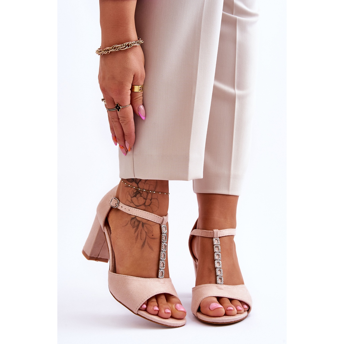 Realizzati in eco-pelle scamosciata di alta qualità, i sandali hanno sottili cinturini decorati con strass che imitano efficacemente gli strass, aggiungendo classe e lucentezza. Un cinturino regolabile con fibbia e un tallone irrigidito assicurano perfetta vestibilità e stabilità, il che significa che puoi goderteli tutto il giorno senza preoccuparti del disagio.