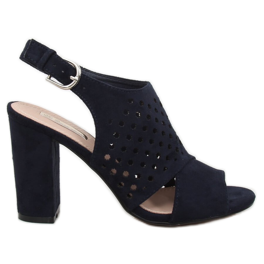 Realizzati in pelle scamosciata ecologica, i sandali si distinguono per un motivo traforato che conferisce loro un carattere unico e attira l'attenzione. Grazie al loro classico design senza punta e all'elegante colore blu navy, queste scarpe sono perfette sia per occasioni speciali che per stili casual.