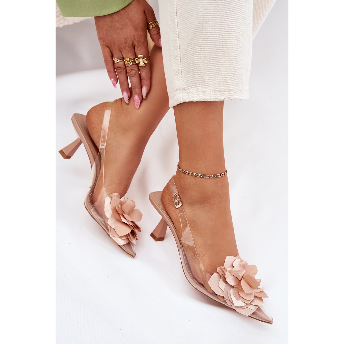 Inna marka Sandali trasparenti su un tallone alto con un fiore nudo decorativo beige