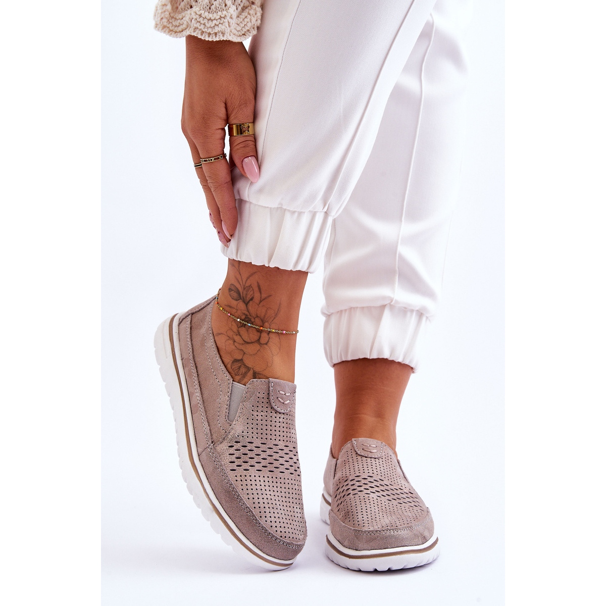 Dettagli: Scarpa Slip-on in Pelle Scamosciata Beige-Oro Inez