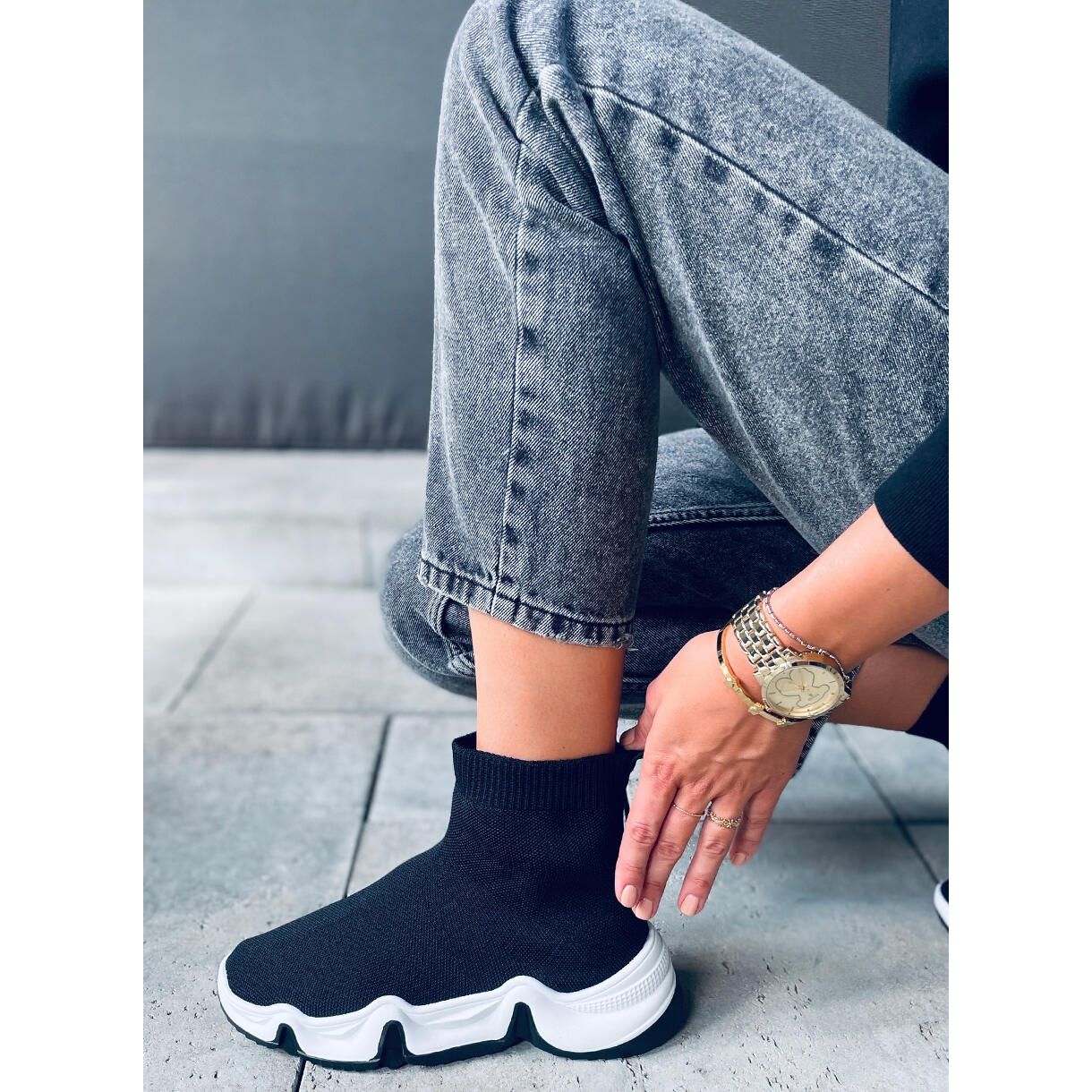 Queste sono le scarpe calzino alte Trumm Nero nel classico colore nero, che diventeranno sicuramente un elemento inseparabile del tuo stile quotidiano. Queste scarpe sportive da donna sono progettate pensando al comfort e ad un look alla moda. Realizzati in tessuto flessibile per calzini, si adattano perfettamente alla forma del piede, garantendo un comfort eccezionale per tutto il giorno.