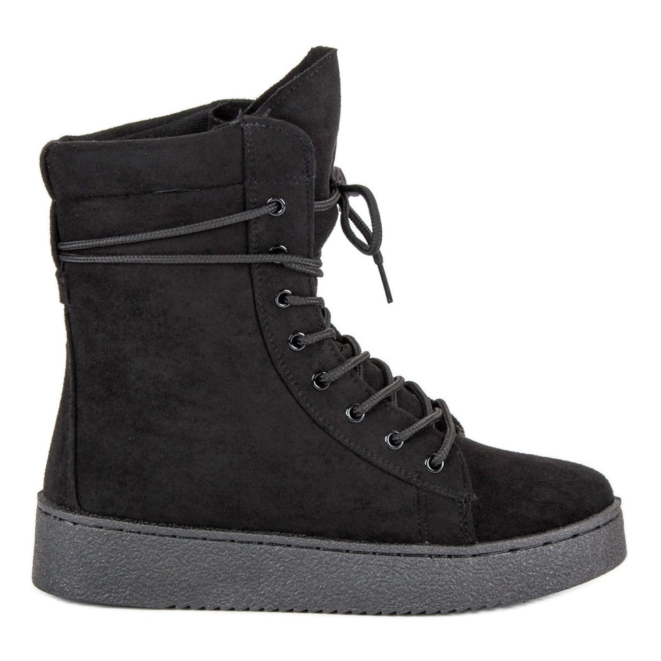 Presentiamo la soluzione perfetta per le giornate invernali: calzature invernali stringate nere che combinano stile e funzionalità. Questi bellissimi stivali da neve, realizzati in pelle scamosciata ecologica, sono la scelta perfetta per le donne che apprezzano l'eleganza e il comfort.
