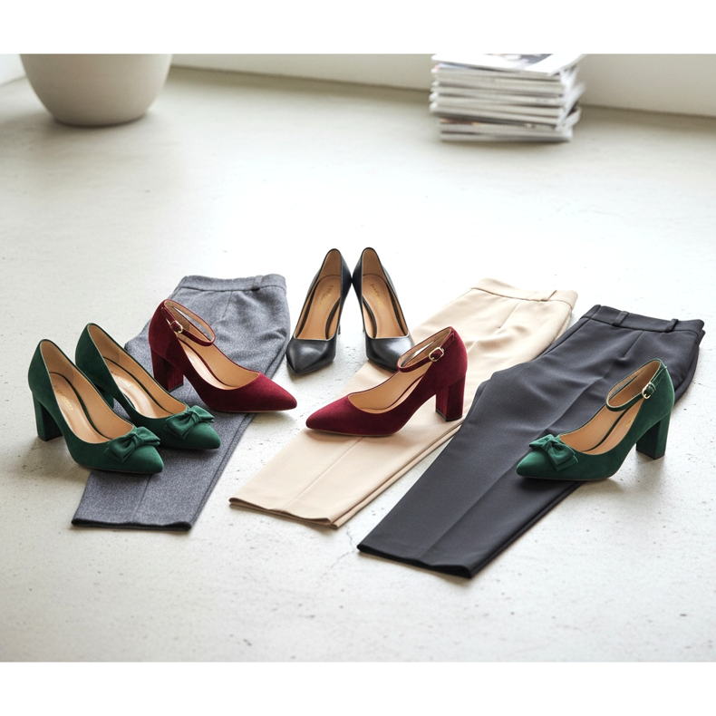 Se vuoi aggiungere un po' di eleganza, puoi scegliere tacchi alti con dettagli caratteristici: fiocchi, strisce o elementi decorativi. Tuttavia, ricorda di non esagerare con il numero di modelli: i pantaloni a gamba dritta sono di per sé molto espressivi.