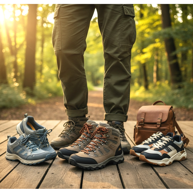 Le scarpe da trekking si abbinano perfettamente ai pantaloni cargo per le attività, poiché forniscono trazione e stabilità adeguate. Puoi scegliere tra vari modelli: da quelli più leggeri e casual alle scarpe da trekking più pesanti e professionali.