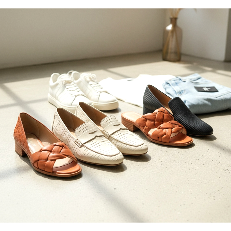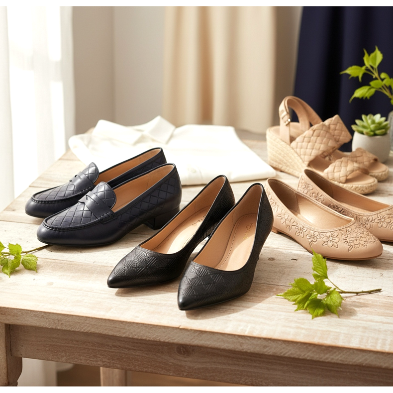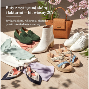 Nella primavera del 2026, sono particolarmente di moda le scarpe realizzate in pelle goffrata con motivi geometrici: quadri, rombi, cerchi o motivi Art Déco. Questo tipo di trama ha una certa serietà ed eleganza: è perfetta per scarpe da lavoro, mocassini e décolleté.