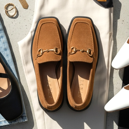 I mocassini con punta squadrata sono perfetti per pantaloni ampi ed eleganti, jeans a vita alta o abiti con colletto a camicia. Questa combinazione mostra uno stile con un leggero accenno di androginia: forte, deciso e molto trendy nel 2026.