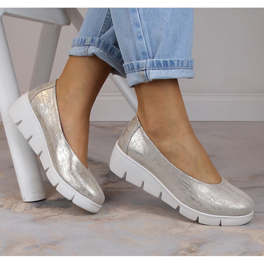Le scarpe da donna con zeppa slip-on in pelle in un accattivante colore oro del produttore Filippo sono una proposta ideale per le donne che apprezzano l'eleganza e il comfort ogni giorno. Grazie al design slip-on, queste scarpe sono estremamente pratiche, permettendoti di indossarle e toglierle rapidamente.